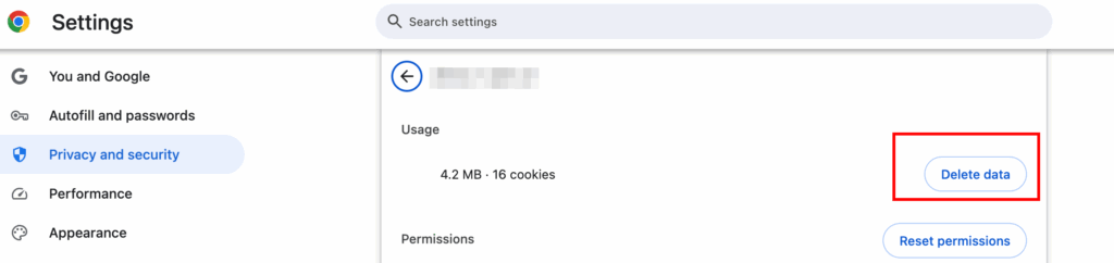 Selanjutnya, Anda akan dibawa ke menu pengaturan di browser. Klik Delete data untuk menghapus cache.