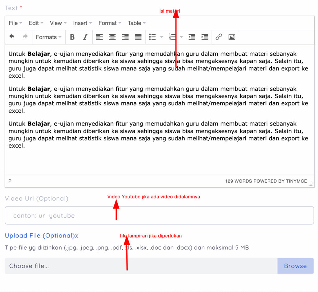 Pada form selanjutnya, silakan isi materi, link video youtube dan upload lampiran jika ada