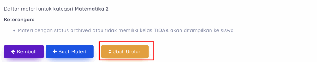 Anda dapat mengurutkan materi yang ingin ditampilkan disiswa dengan melalui menu Ubah Urutan