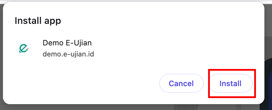 Aplikasi e-ujian menggunakan teknologi PWA sehingga proses instalasinya sama baik di perangkat Android, iOS dan Windows.